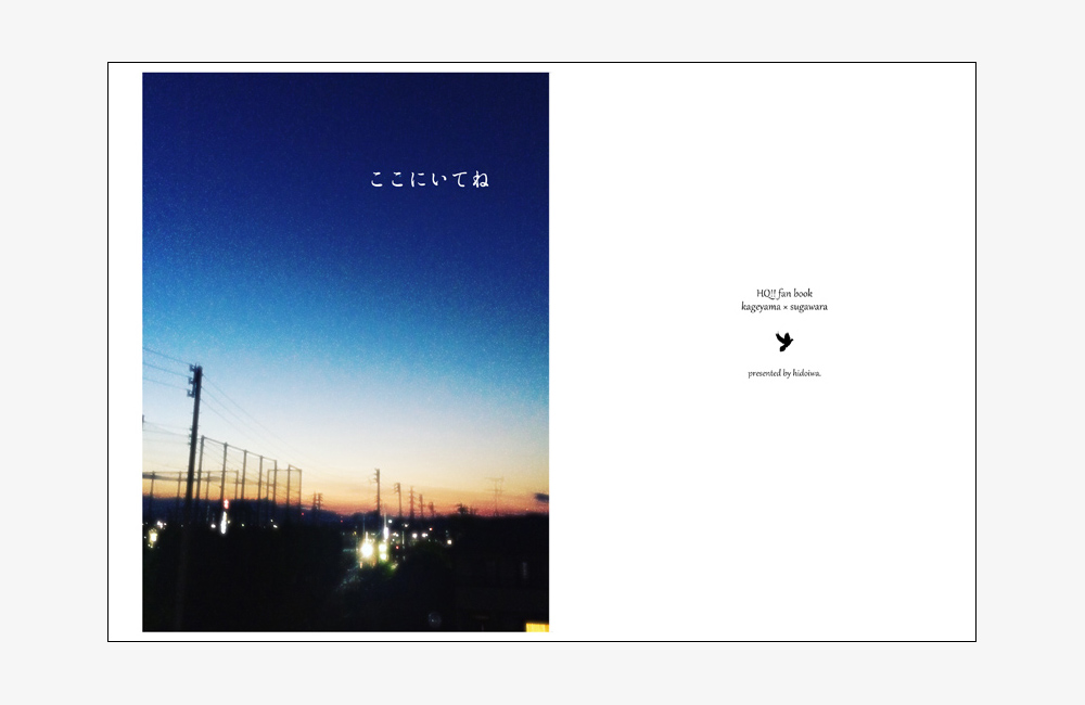 お知らせです。 Category:murmur Date:2018年10月07日 webに掲載している影菅の、いくつかのおはなしをまとめた短篇集をつくっております。 表紙・背表紙はこんなかんじの…予定です…(印刷時、すこし色味が変わります)。 「ここにいてね」影菅再録本/B6/コピー/60p(本文) pixiv及びサイト、ブログで掲載している「うばら」「さよなら、ブルー」「日常」「サマー、ハロー、アゲイン」「curtain」(「あたためてやるよ」改題)の5本収録 まとめるにあたり若干の表現の変更、修正を行っていますが加筆はありません。内容はおなじで全文、webにて読めます。 本がつくりたくてつくりたくて、つくりました。ほんとうにただの自己満足です… どこで出させて頂くかとか、ぜんぜん考えずに、気持ちだけでつくったので、 どうしたらいいかな… といったところです(なんでつくった?)(つくりたかった…) 現状、心身がやや不安定ということもあり、現実的にイベント参加がむつかしくて、 でも地元のイベントか、来年2月のRTSかに持っていきたいかな…などともぼんやりかんがえていました。 ぜんぶただの願望なのですけれど…。 そうでなければboothを使わせて頂こうかな、とか、 ほしいと言ってくださるかたに個人的にお贈りさせて頂こうかな、とか、 頒布はせずにじぶんの手もとに一冊あるだけでいいかな、とか、 ほんとうになんにもかんがえていなくて、すみません…。(なんでつくったの…?) なにか決まりましたらまたアナウンスさせてください。 とりあえず、こんなんつくってみたよ~というお知らせでした。 本つくるのたのしすぎて、ただのコピー本ですけれど、ほんとうにたのしいですね…! じぶんの文章が紙に印字されるのほんとうにうれしいし、ちまちま製本するのもはちゃめちゃにたのし~… もっと色々つくってみたいです。 万紬でも一冊、つくりたいなあと思っていたり。